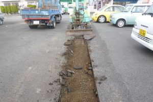 まずは切れ目を入れたアスファルト部分を撤去していきます![]()