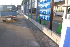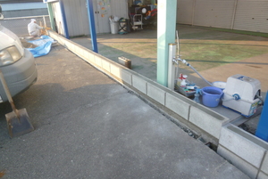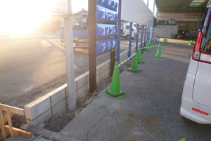 そして新しい看板を設置して境界ブロックを施工していきます![]()