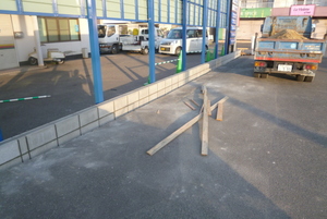 そして新しい看板を設置して境界ブロックを施工していきます![]()