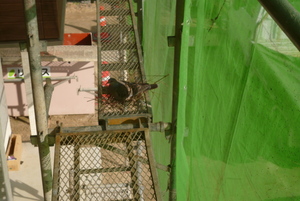 なんと足場の上で鳩が巣を作りすでに卵を温めている様子![]()