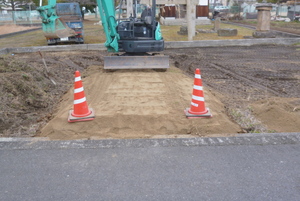 現場についてさっそく工事車両が進入するための仮設道路を作ります![]()