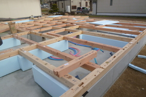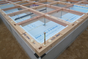 土台の取付工事も終わり次は基礎断熱工事です![]()