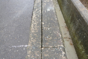 まずは新しく敷地へ入るためにかけるコンクリート製の床版を乗せるため、全面道路のコンクリート面を床版の厚みに合わせて切断していきます