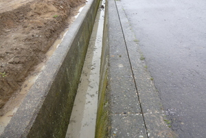 まずは新しく敷地へ入るためにかけるコンクリート製の床版を乗せるため、全面道路のコンクリート面を床版の厚みに合わせて切断していきます