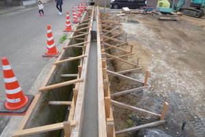 最後に道路側の土留擁壁工事コンクリート打設を行いました