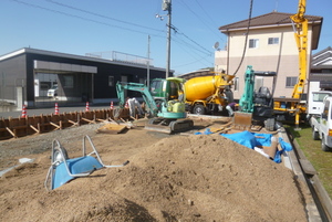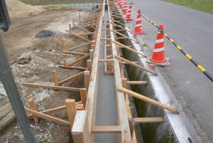 最後に道路側の土留擁壁工事コンクリート打設を行いました