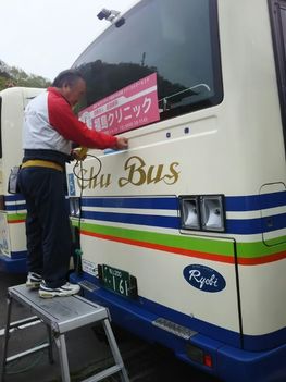 ボディーの汚れを丁寧に落として、広告を貼り付けた後