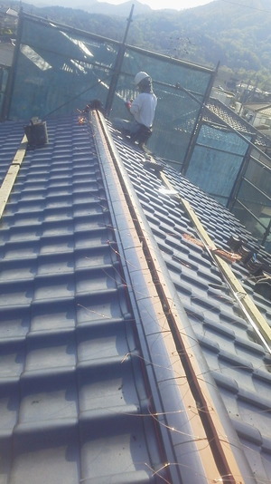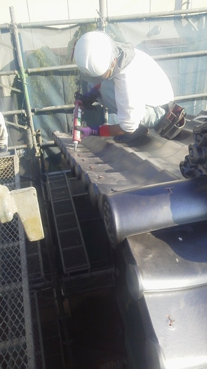 以前は古い瓦に塗装を施してしまい、見るも無残な状態でした![]()