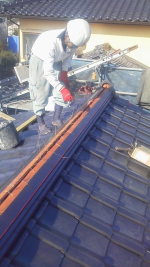 以前は古い瓦に塗装を施してしまい、見るも無残な状態でした![]()