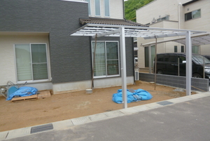 土木工事と化粧ブロック工事の工事が区切りがついたのでこの日はカーポートの設置を行いました![]()