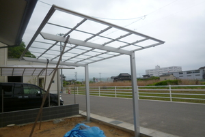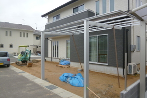 土木工事と化粧ブロック工事の工事が区切りがついたのでこの日はカーポートの設置を行いました![]()