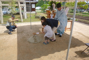 さて私は本日、新築工事に向けてお施主様と地鎮祭を執り行いました