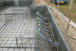 基礎配筋検査も無事終わり、先行配管工事に着手