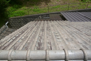 山に囲まれた水源地のほとりに建つ住宅なのですが、屋根瓦の劣化具合が前にも増して進んでる光景にビックリです![]()