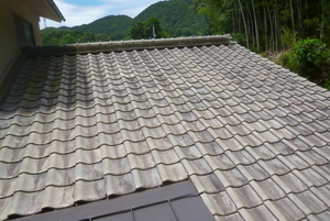 山に囲まれた水源地のほとりに建つ住宅なのですが、屋根瓦の劣化具合が前にも増して進んでる光景にビックリです![]()