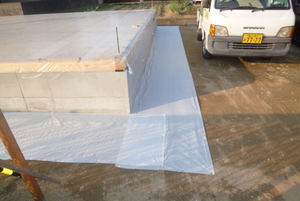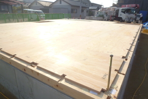 昨日の作業を引続き行い、1回目の捨床合板張も完成