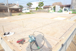 昨日の作業を引続き行い、1回目の捨床合板張も完成
