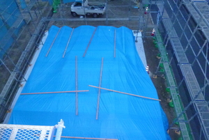 心配された雨もそうでもなく、足場作業も順調に進みました![]()