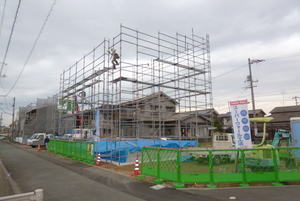 いよいよ明日に迫った上棟に向けて本日先行足場工事![]()