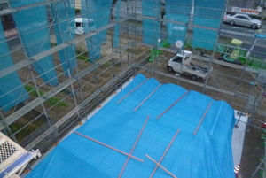 心配された雨もそうでもなく、足場作業も順調に進みました![]()