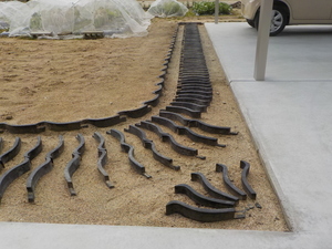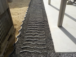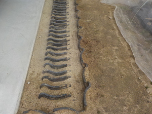 まず屋根の葺替工事などで不要になる古瓦を、建物から少し離れた位置に埋設設置していきます![]()