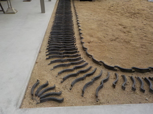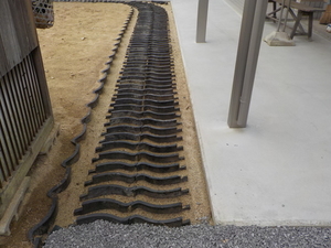 まず屋根の葺替工事などで不要になる古瓦を、建物から少し離れた位置に埋設設置していきます![]()