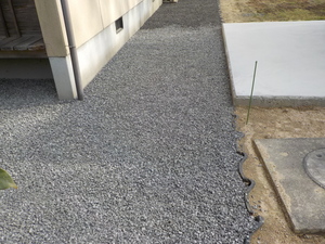今回は家の廻りの雑草対策と和の雰囲気を用いた外構工事です![]()