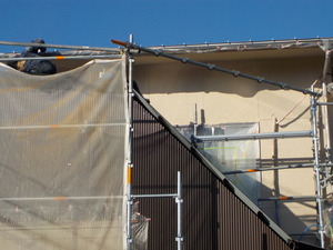 色見本で見るより実際のほうが明るいような気がしましたが、正真正銘お客様が選ばれた色にて塗装工事進行中です![]()