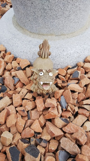 鳥居の足元に獅子ちゃんが居りましたので一緒に撮影
