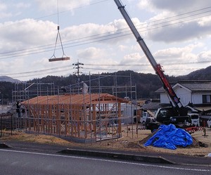 三原市久井町:SW工法で快適な23坪の平屋住宅を建設中!屋根工事完了 -