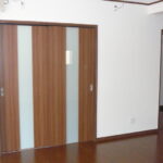 • 洋間入口も乳白色の硝子を組み込んだ建具にする事で部屋から部屋への明るさ対策もバッチリです。