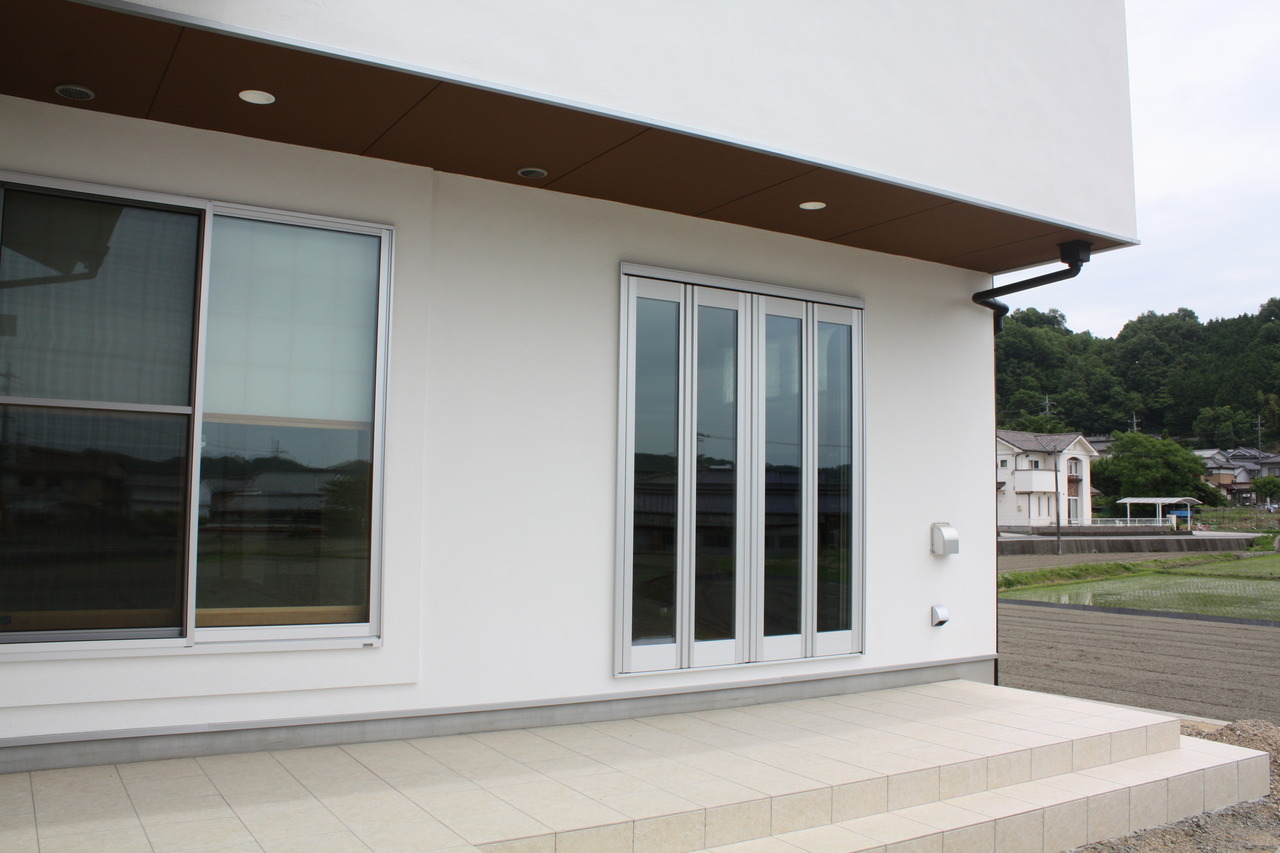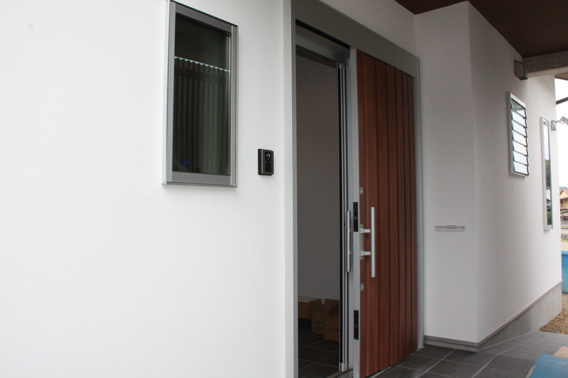 • 玄関へは左右の通路から向かう事ができ、玄関サッシも片引戸を採用しました。
