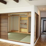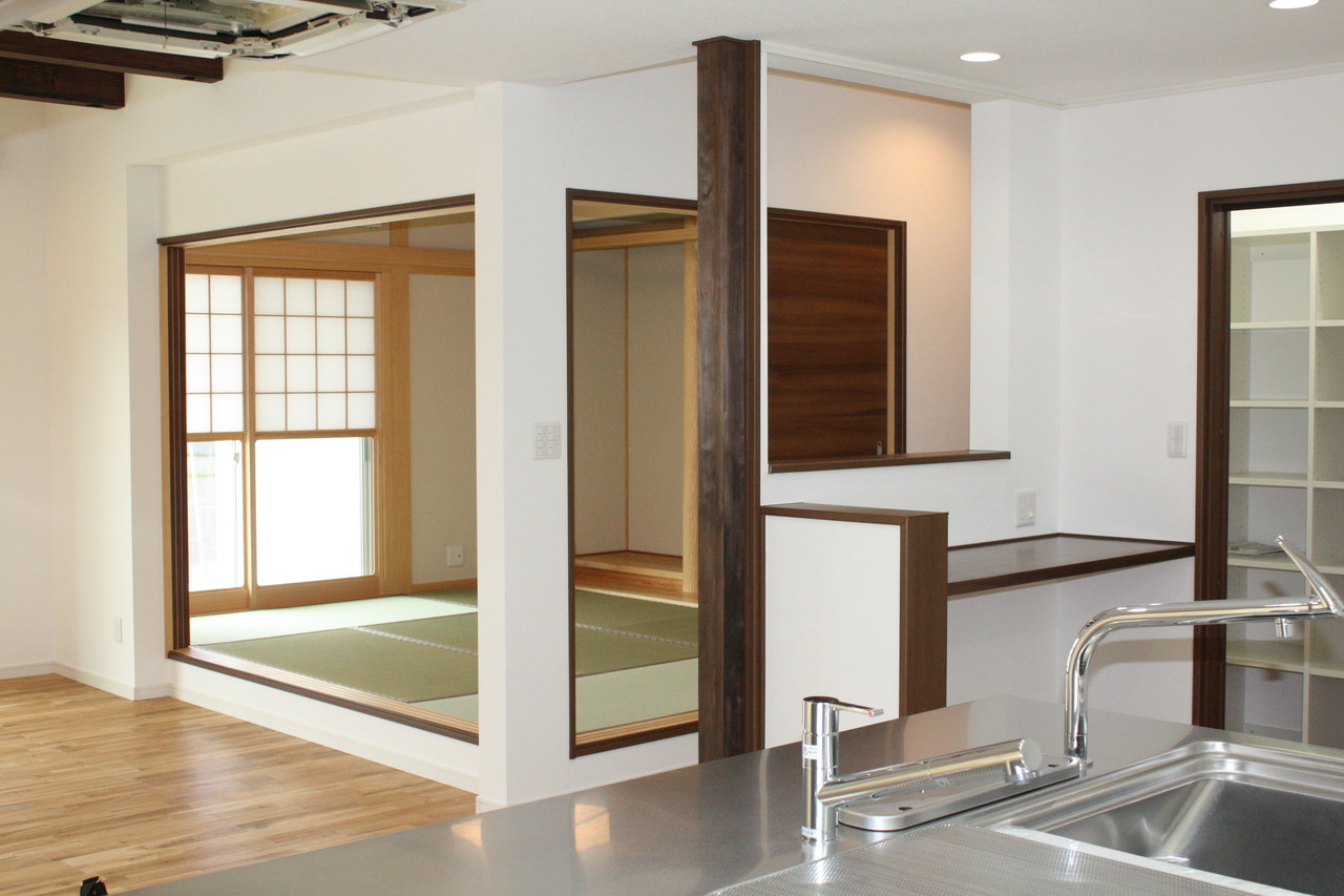 • ダイニングから見た和室。建具を開口するとリビングからの続き間として利用できます。