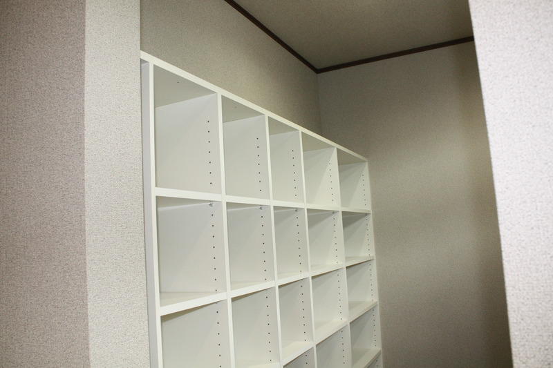 • 書斎にある可動式本棚。用途に合わせた使い方が出来ます。