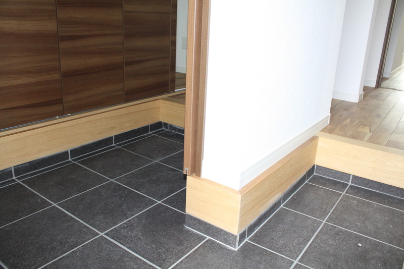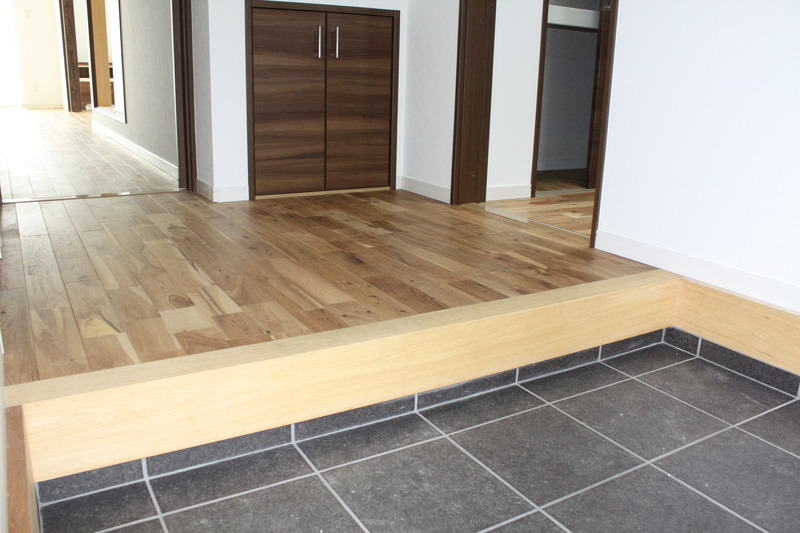 • 引戸を開けると広々とした玄関ホールが現れます。段差は最大限に抑えました。床材は無垢材の自然塗料仕上げです。