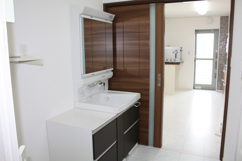 • キッチンから続く洗面脱衣室。この度はTOTO製を採用です。 収納力も抜群です。