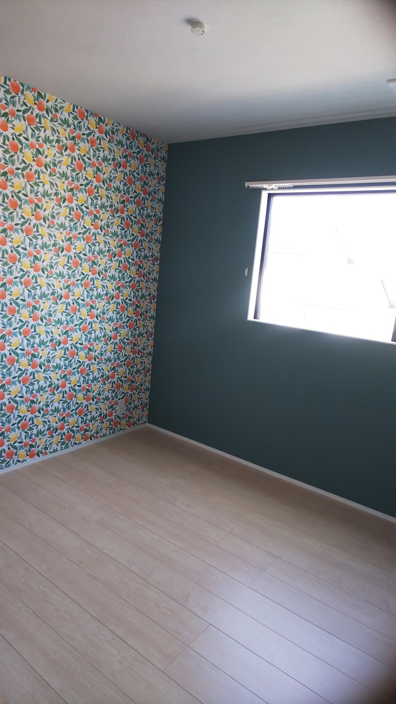 遊び心のあるクロスで仕上げた楽しい予備室です。
