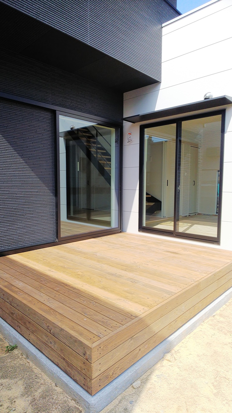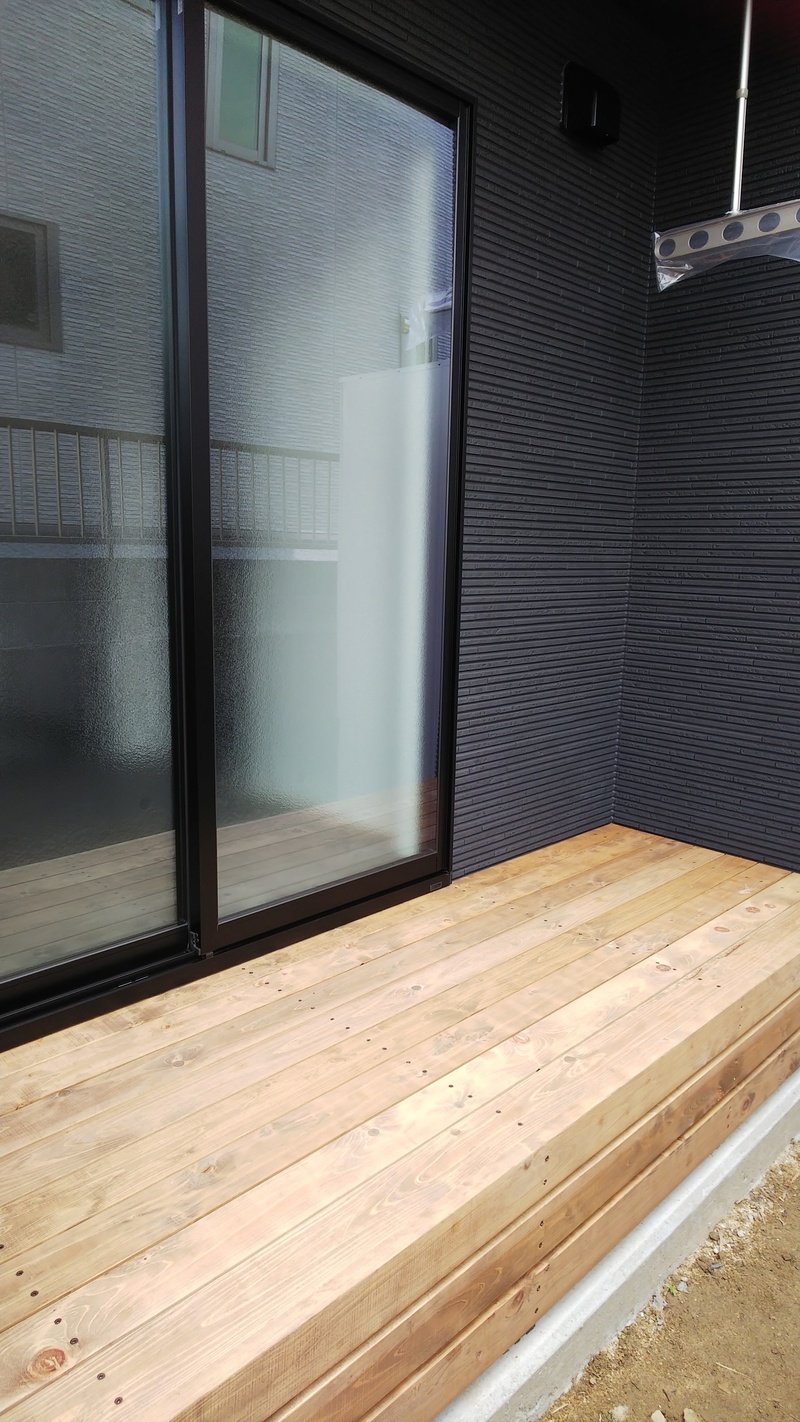日当たりの良いウッドデッキは、リビングからも和室からもアクセス可能です。