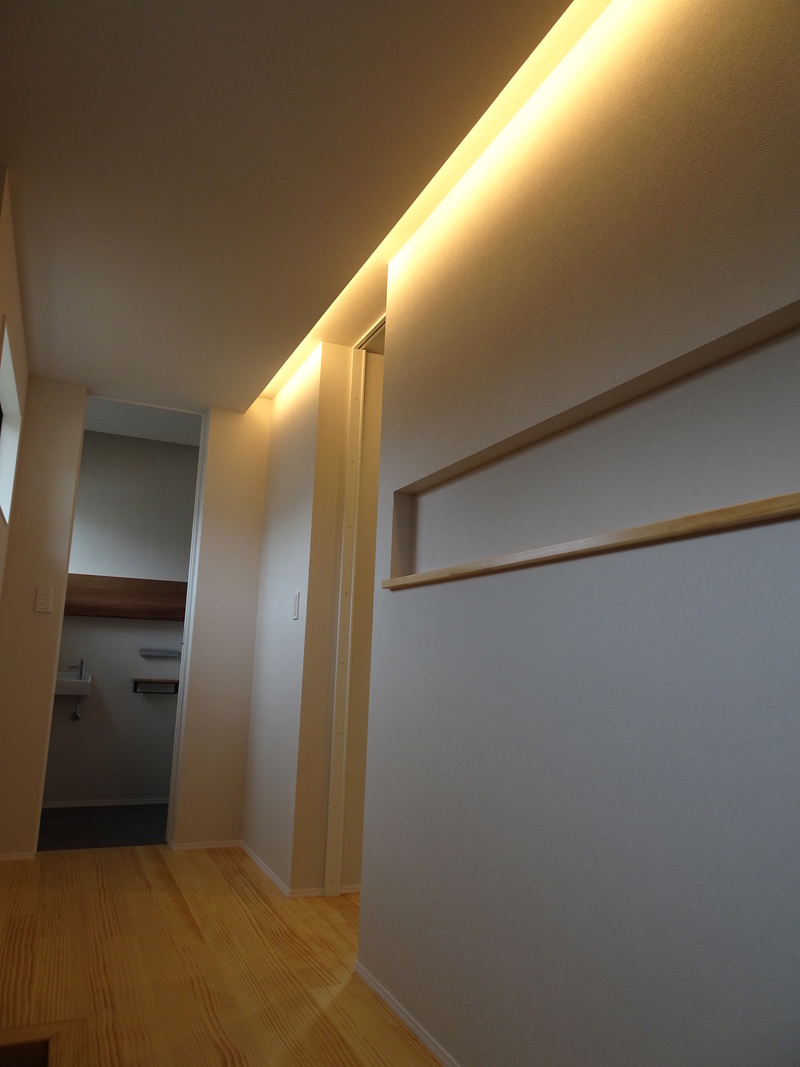 暗くなりがちな玄関ホールを優しく照らしてくれる間接照明を設置しました。