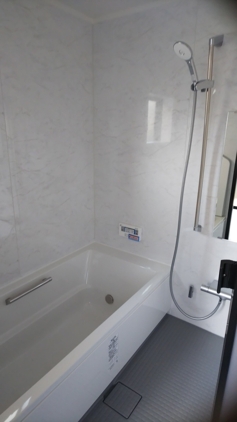 浴槽、パネルともに白を選ばれ、清潔感のある空間に。